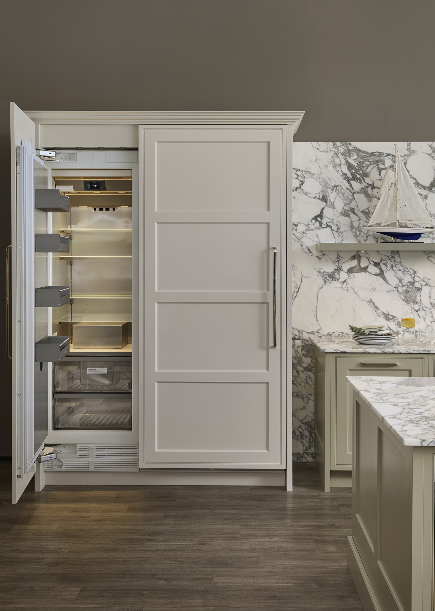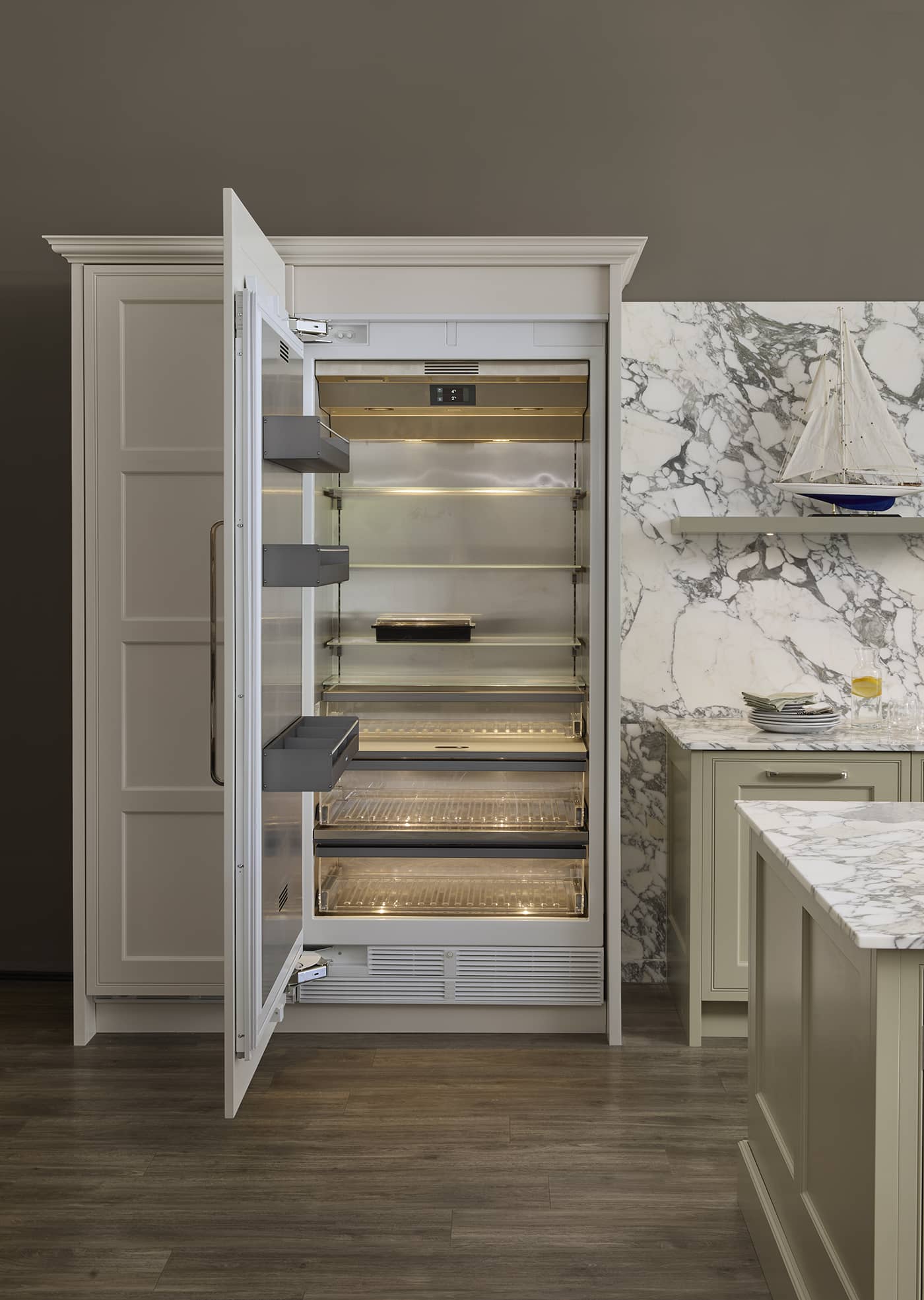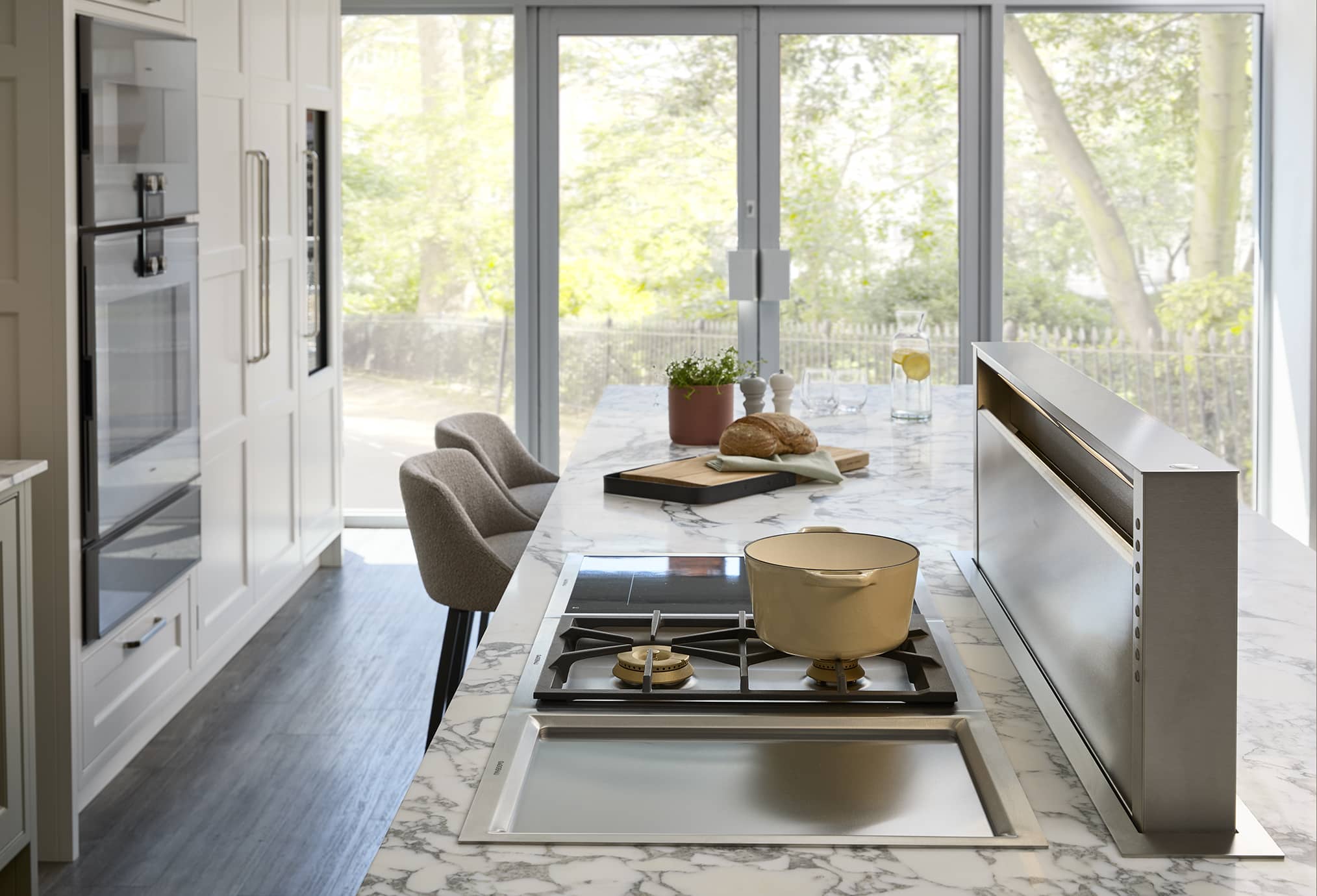 Seamlessly integrated Gaggenau appliances bring professional-grade performance and refined engineering to this bespoke kitchen. Intuitive functionality and advanced cooking technology offer exceptional control, making everyday cooking effortless and elevated.