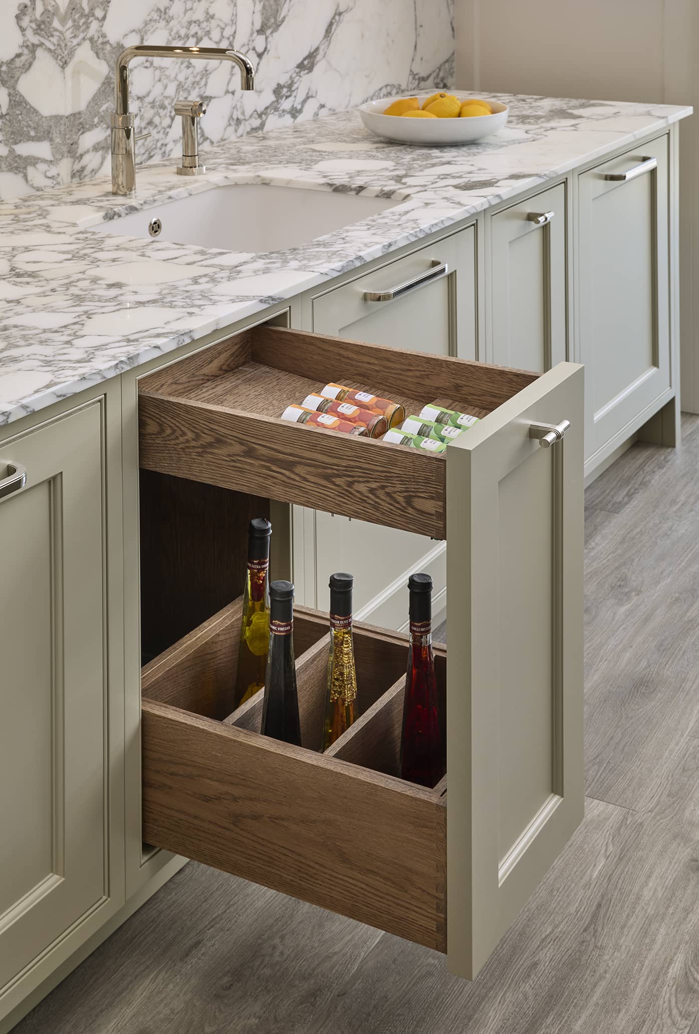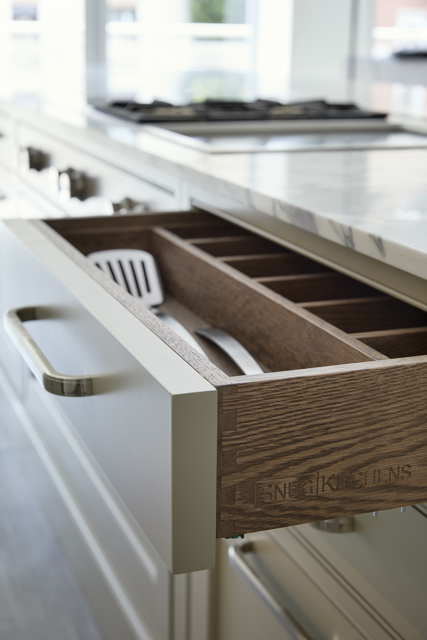 At Snug, craftsmanship is at the heart of everything we do. We work exclusively with the finest materials and finishes, handcrafting each element with precision and care. Our custom-stained oak veneer carcasses are colour-matched to surrounding interior features—such as flooring and tabletops—for a seamlessly integrated look. Traditionally constructed dovetail drawer boxes and meticulously detailed carcass internals are tailored to your exact needs, reflecting our commitment to enduring quality and bespoke design